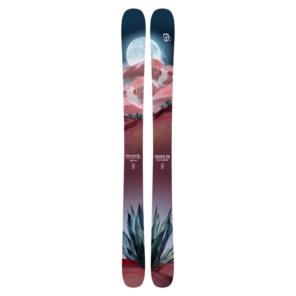 Vår Maiden 108 är här, och hon är bättre än du någonsin kan föreställa dig. Hon är vacker, hon är stabil och hon är kanske roligare än du trodde. Vad finns det att inte gilla? Oavsett om du hoppar genom champagnepuder, spränger dig igenom slakpucklarna. Hennes solida plattform, som stöds av kolfiber som löper från tip till tail. Dina puderben kanske inte är redo.. ändå kommer Maiden 108:s generösa rocker i tip och tail att hålla dig flytande där ute!